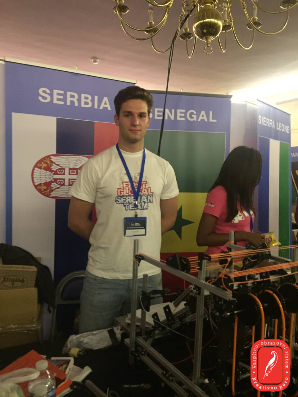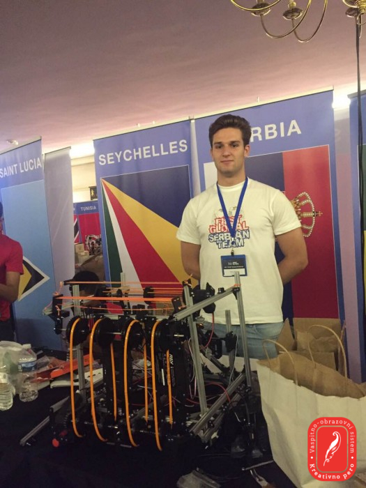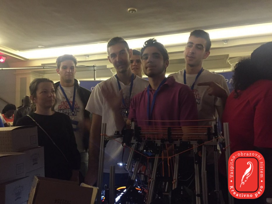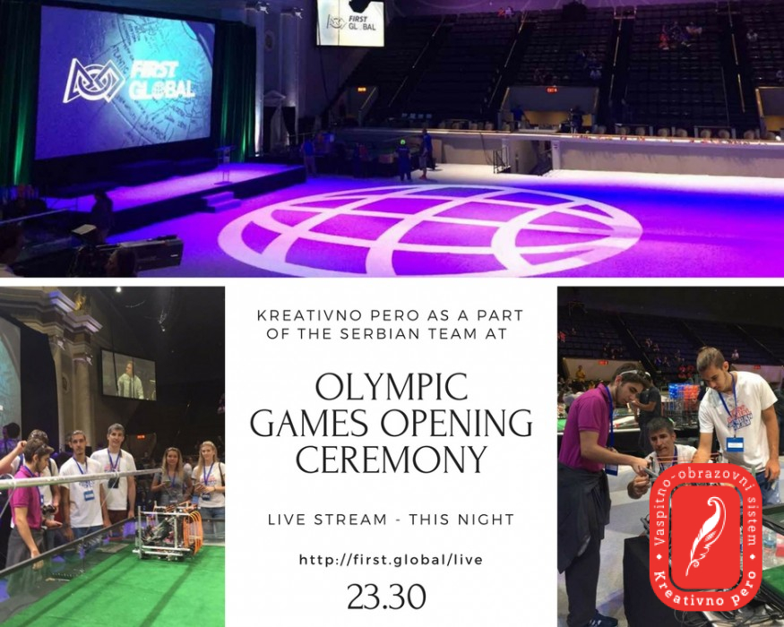 Србију на Олимпијади роботике представљају Владана Јоксимовић, Теодора Голубовић и Лазар Шврака из приватне београдске гимназије Креативно перо, Далибор Наспалић, Илија Грк и Матија Ђуровић, ученици српске гимназије Никола Тесла из Будимпеште и Филип Старчевић из Дванаесте београдске гимназије. Ментор српског тима је Вук Вујовић, наставник програмирања у гимназији Креативно перо. Српски тим се за Олимпијаду роботике спрема од априла 2017. године, а позив за учешће стигао је у децембру 2016. од Интернационалног ФИРСТ Комитета (ФИРСТ Глобал). Машински факултет био је један од сарадника на пројекту и представницима српског тима обезбедио је просторије у којима су се ови млади људи састајали и од идејног решења дошли до финалног робота који Србију данас и сутра представља на Олимпијади роботике. Српски тим свог робота представиће у алијанси са још две земље и то у шест наврата - ПОНЕДЕЉАК 17.7.2017. ПРВА РУНДА ИГРА 18 16:27 - 16.33 Србија у АКВА тиму заједно са Црном Гором и Јужном Корејом против Молдавије, Лаоса и ЦабоВерде ДРУГА РУНДА ИГРА 17 19:40 - 19:42:30 Србија у ХИДРО тиму заједно са Русијом и Лесотом против Хаитија, Украјине и Гренаде ТРЕЋА РУНДА ИГРА 21 23:00 - 23:02:30 Србија у ХИДРО тиму заједно са Мјанмаром, Кинеским Таипеијем против Црне Горе, Гамбије и Јужне Кореје УТОРАК 18.7.2017. ЧЕТВРТА РУНДА - ово је рунда у којој ће камера пратити српског робота ИГРА 27 16:39 - 16:45 Србија у АКВА тиму са тимом Хоупс (овај тим чине избеглице из разних крајева света), и Екваторијалном Гвинејом против Јужне Африке, Аустрије и Палестине ПЕТА РУНДА ИГРА 27 19:58 - 20:04 Србија у ХYДРО тиму са Хрватском и Уједињеним арапским емиратима против Мозамбика, Намбије и Пакистана ШЕСТА РУНДА ИГРА 14 21:36 - 21:42 Србија у ХYДРО тиму са Норвешком и Филипинима против Марока, Туркменистана и Словеније Наступ српског тима можете пратити уживо преко следећег линка: хттп://фирст.глобал/ливе Овогодишња тема Олимпијаде роботике је чиста вода. Сви тимови су из САД-а добили исте делове од којих је требало да саставе робота који ће учествовати у игри скупљања црвених и плавих лоптица које представљају чисту и загађену воду. Више од милијарду људи нема приступ чистој води, а више од половине њих су деца и то је основни мотив овог такмичења. Верујемо да ће наши будући лидери у потпуно новој генерацији технологије понудити парво решење. Циљ Олимпијаде је јачање свести о важности СТЕМ каријере, као дугорочне опције за будућност младих људи и пружање подршке интеркултуралној сарадњи и разменама. СТЕМ је курикулум темељен на идеји образовања у четири специфичне дисциплине - наука, технологија, инжењерство и математика, кроз интердисциплинарни приступ. Наиме, уместо да се наведене четири дисциплине истражују засебно и буду одвојени предмети, СТЕМ их интегрише у јединствену парадигму учења и истраживања. Министарство просвете, науке и технолошког развоја подржало је српски тим уз честитке Гимназији Креативно перо због одлуке да се на овом интернационалном такмичењу представе заједно са ученицима гимназије Никола Тесла из Будимпеште и XII београдске гимназије.