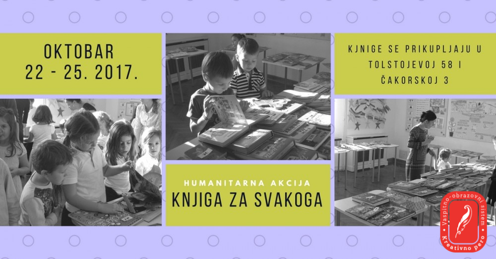 Tokom oktobra meseca u vrtiću, osnovnoj školi i gimnaziji Kreativno pero prikupljaće se knjige.