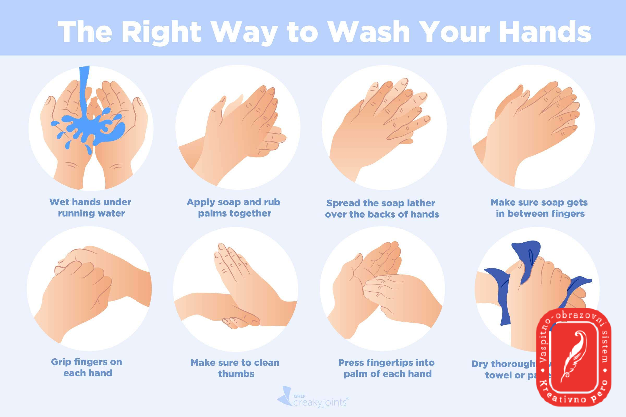 Како? Руке треба прати хигијенски исправном водом за пиће и сапуном у трајању од најмање 20 секунди или употребом дезинфекционог средства на бази 70% алкохола. Дезинфекција руку средствима на бази 70% алкохола не може заменити прање руку водом и сапуном уколико су руке видно запрљане. После 3 до 4 дезинфекције руку, обавезно опрати руке водом и сапуном.